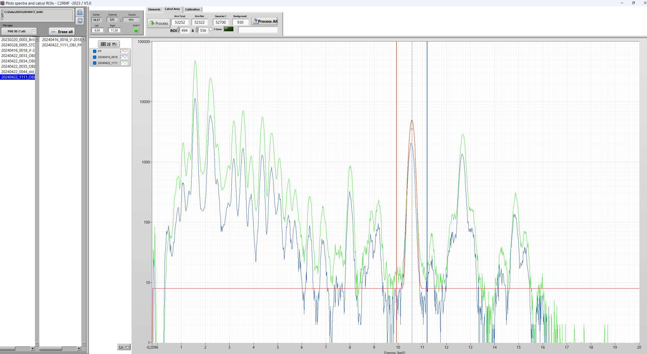 PlotAndRoi allows to plot and compare all types of files acquire at AGLAE (PIXE, RBS, PIGE, IBIL, ...) . It can also fit one peak on all spectra quickly to do PIGE processing by doing simple rules of three method.