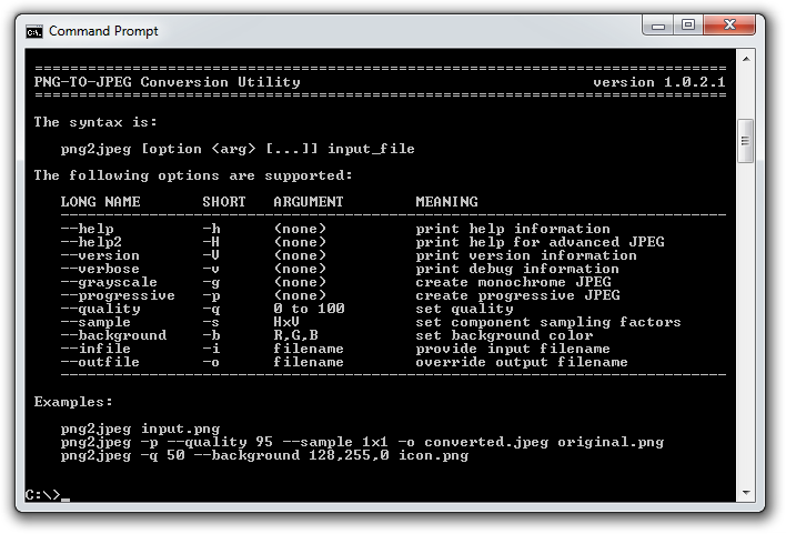 png2jpeg is a simple command-line image converter from PNG to JPEG.