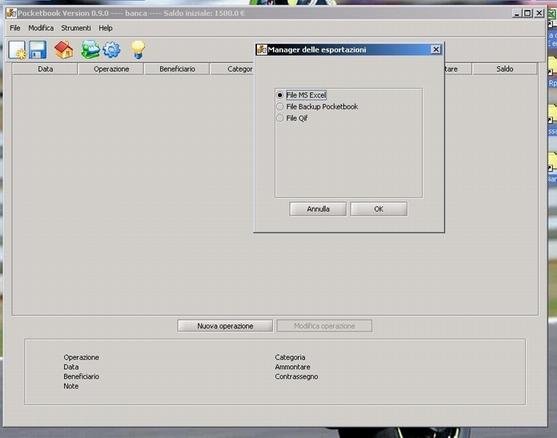 Pocketbook is a Java software that allows a complete money management. It manages the creation of report and diagrams and allows export to much file format (QIF,MS Excel, pdf, HTML, XML).