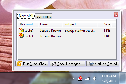 This program builds upon the open source PopTray mail notifier adding many new features including Windows Vista/7/8/10 support, UTF-8 and unicode support, HTML Preview, IMAP support, TLS & SASL support, etc.