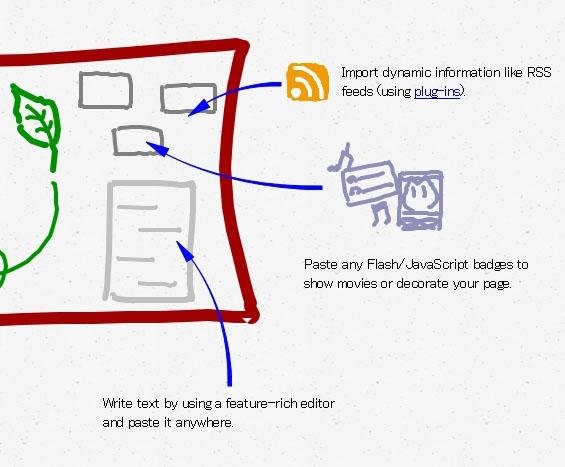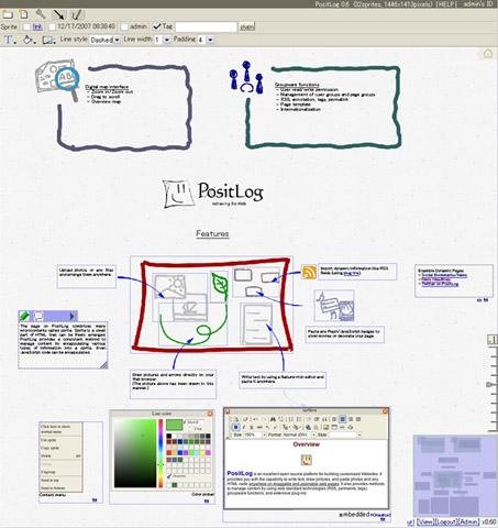 PositLog is an open source CMS for building custom-made Websites. It provides you with the capability to write text, draw pictures, and paste photos and any HTML code anywhere on draggable and zoomable web pages.