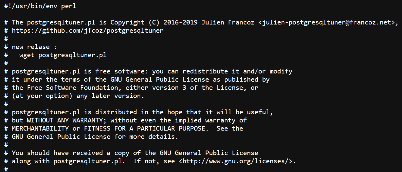 GNU General Public License version 3.0 (GPLv3)Follow postgresqltuner.pl