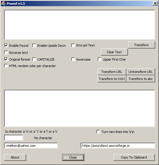 A simple program to modify text. It puts a # in front of every word if you want. It can turn your text upside down. It has a rudimentary text encryption code.