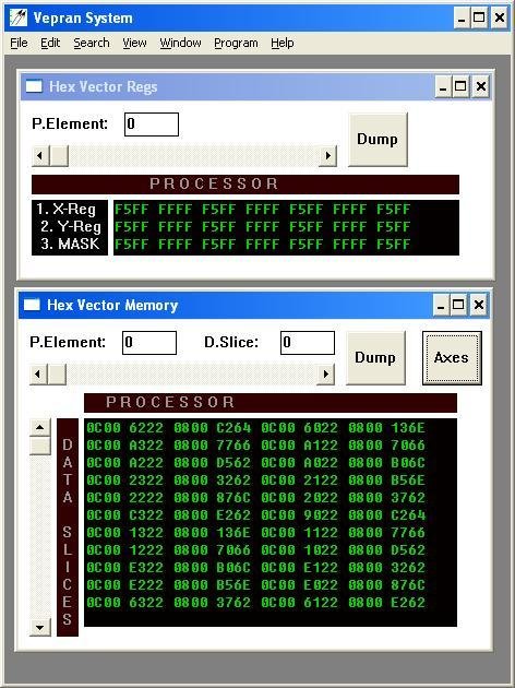 PPface is vector processor emulator / simulator (SIMD array processor with 1-bit processing elements). VEPRAN language used to design parallel algorithms and operate data slices. The system allows to visualize algorithm work by viewing vector memory and registers, it supports debugging and animated program execution.