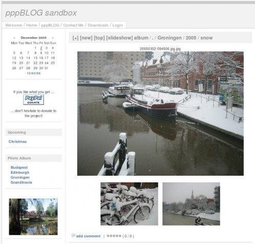pppBLOG is a simple PHP based weblog package with photo gallery. It is based on plain text files and does not require any database.