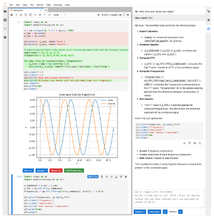 - AI-powered notebook environment with inline code generation and editing