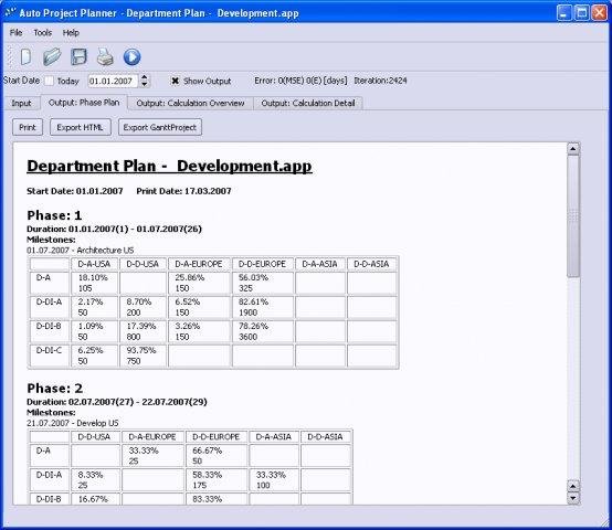 APP automatically calculates a project plan based on effort estimations and expected end dates. Tasks can be assigned to one or more staff members. Vacations, predecessors, weekly work hours and other parameters are considered in calculation
