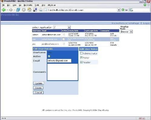 A wiki engine/site written in C# with VWD, using ASP.NET 2.0 with SQLExpress/2005 as the backend. Features Include page preview prior to posting, image and file uploads, history tracking, user management, web part site configuration by administrators.