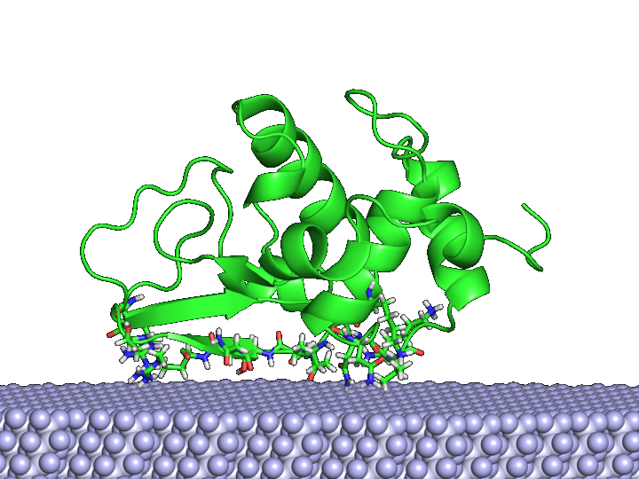 ProtPOS is a self-contained, lightweight, and easy-to-use software package for predicting the preferred orientation of protein on a given surface upon initial adsorption. It searches quickly for the low energy protein poses in all translational and rotational degrees of freedom of the protein with respect to the surface using particle swarm optimization. Each successful run returns the lowest energy orientation of the protein on the surface in PDB format, which is readily used for MD simulations. ProtPOS is implemented in Python, making use of the PyMOL library for generating protein conformations and calling GROMACS externally to calculate protein-surface interaction energies.