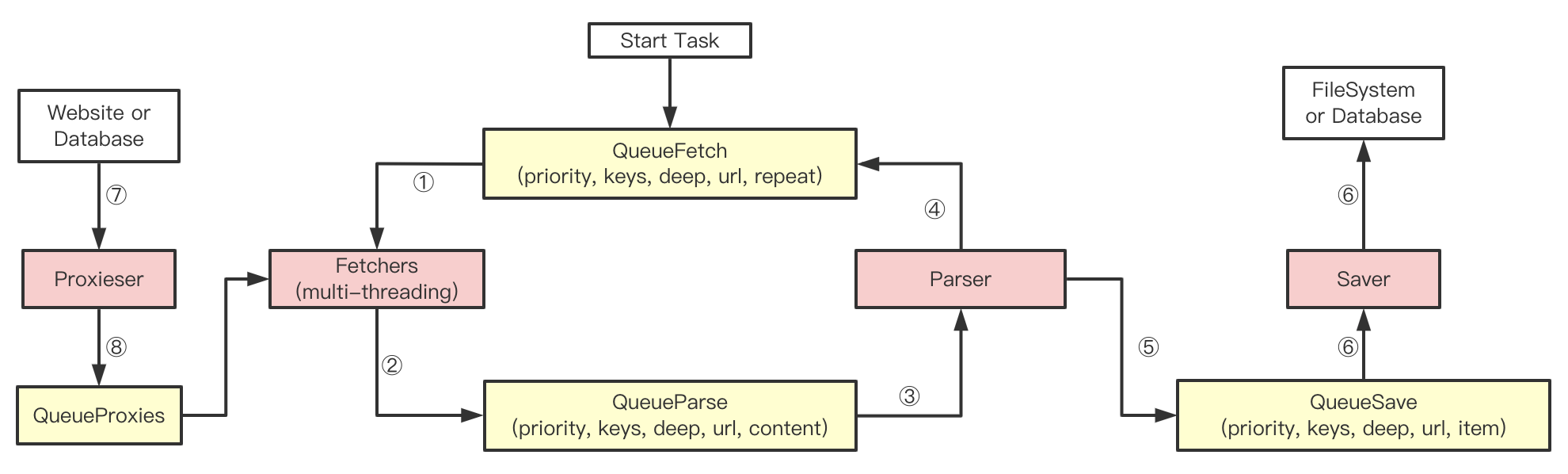 PSpider is a lightweight web crawling framework written in Python designed to simplify the development of custom web spiders. It focuses on providing an easy-to-understand architecture while still supporting concurrent crawling for improved performance. It uses a multithreaded model that separates the crawling workflow into several components responsible for fetching, parsing, and saving data. Tasks are managed through queues, allowing different parts of the crawler to process work asynchronously and efficiently. PSpider defines a set of modules and utility classes that help developers manage crawling tasks, filter URLs, and process scraped content. By organizing crawling tasks into structured stages, PSpider allows developers to build scalable spiders while keeping the codebase relatively compact and readable. Its modular design also makes it easier to extend the framework with additional features or integrate it into existing Python projects.