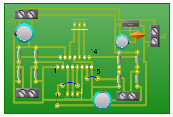 H bridge made with integrated L298. Circuit and diagram created in PCBWizard. Also small arduino code is included for testing.