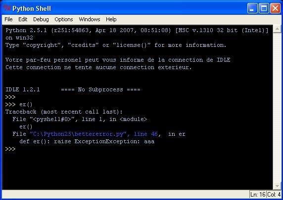 This module goal is to make the debugging tool of python shell even better. By replacing a few methods in the sys module. Standard error traceback are more powerfull with bettererror.py.