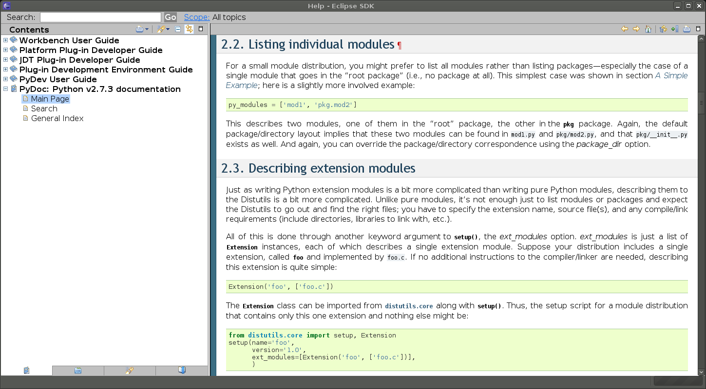 PyDoc is a simple and convenient plugin. It saves time to Python developers using Eclipse SDK and PyDev without any need to switch between development environment and documentation.