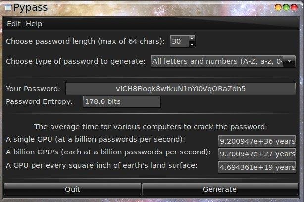 A cryptographically secure random password generator for Linux written in python and GTK 2.0.
