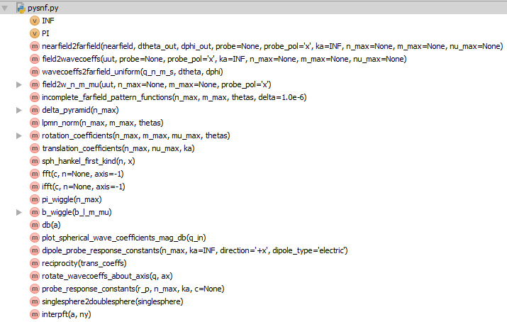 PySNF (which stands for Python Spherical Near-Field) is an open source spherical near-field to far-field module written in Python. With PySNF, users can calculate probe-corrected far-field radiation patterns from spherical near-field antenna measurements. In addition, spherical wave coefficients from simulated or measured antenna radiation patterns can be obtained. The vast majority of the code in this module was developed using equations presented in the book Spherical Near-Field Antenna Measurements, edited by J.E. Hansen.