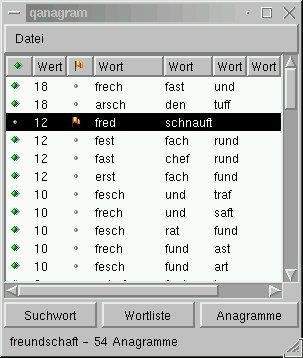 This GUI application generates an anagram, which means rearranging the letters of a word to obtain other words. The application is written in C++ with Qt-4, which means it runs on Unix and also Windows and Mac.