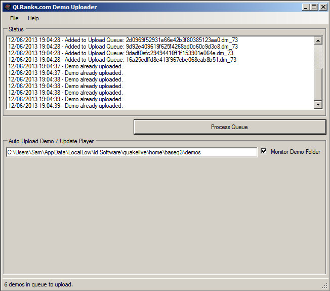 C# .NET Application that monitors a directory specified and automatically updates the players and uploads the demo to the qlranks.com archive.