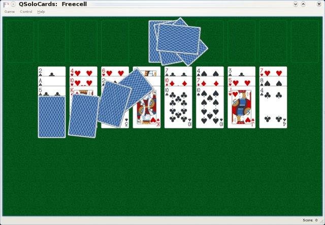 A free collection of solitaire card games written using Qt. QSoloCards is available as a Windows zip file, an OS X universal binary dmg file, or a source code tar.gz archive.