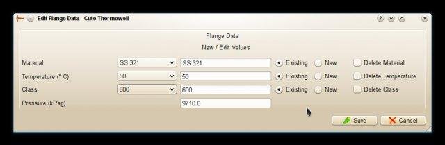 - Add/Edit/Delete material, flange and pipe data