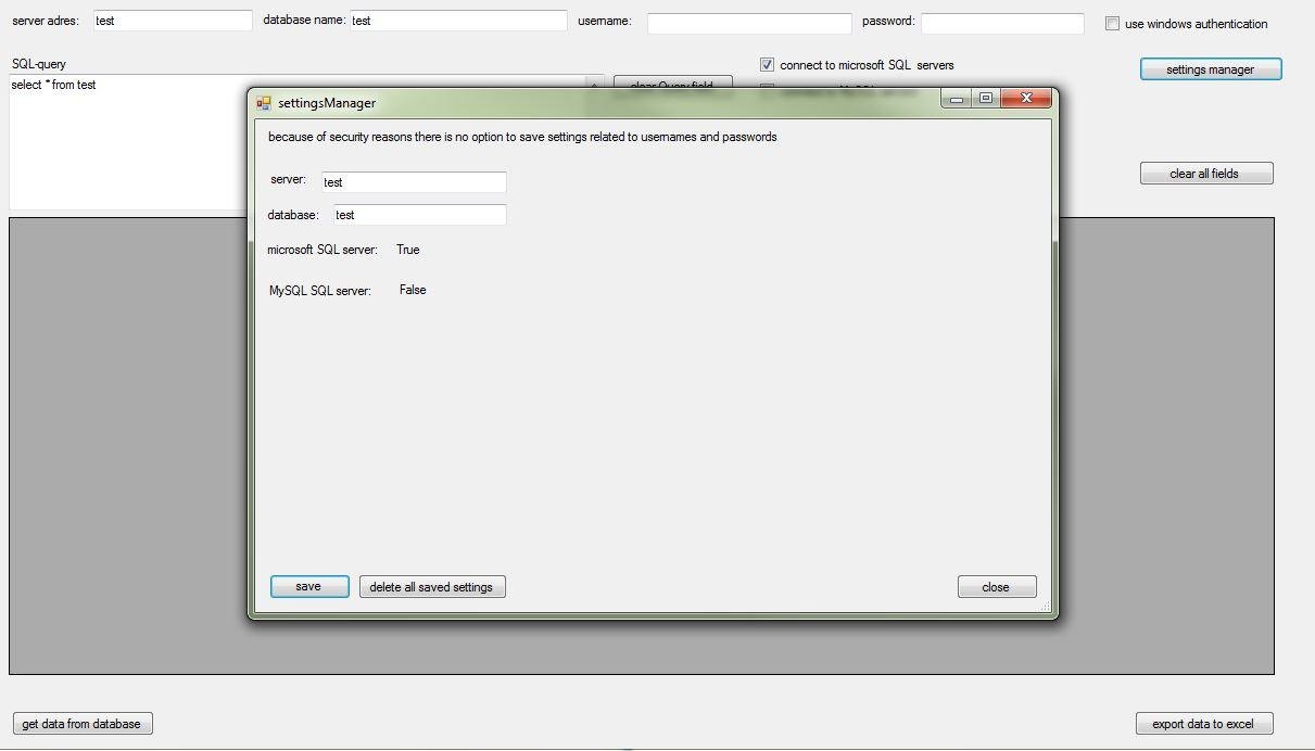 make a query on a windows SQL database or MySQL database and export the data to excel