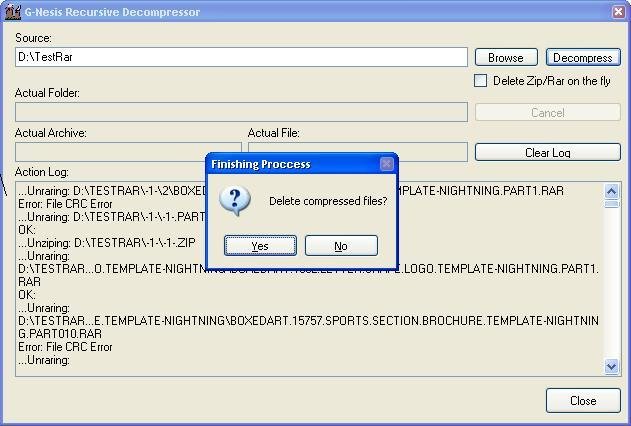 R-Decompressor is a recursive RAR and ZIP decompression utility, you can decompress accross directories and in a recursive way with optional deletion of processed files. Multipart RAR files are supported.