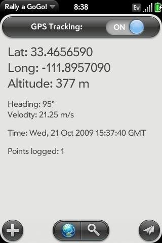 Rally a GoGo is a webOS application that allows for tracking of GPS waypoints. The app allows you to upload these tracks to our website at RallyaGoGo.com (future) or to other tracker sites, like GPSies.com.