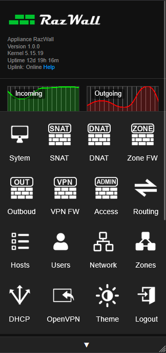RazWall is a community based firewall replacement for 3ndian Community Firewall. RazWall is built on Slackware Linux. We will publish the ISO releases here as they develop. READ THE 'README' FILE BEFORE DOWNLOADING!