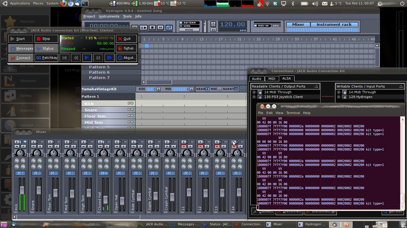 This userland program uses libusb to gain access to the velocity sensitive data in the rockband 3 wireless usb prodrum controller (with cymbals) and Guitar Hero drumkit and use it as an ALSA MIDI controller. It has a low latency setup so that it can give a fairly good drumming experience.