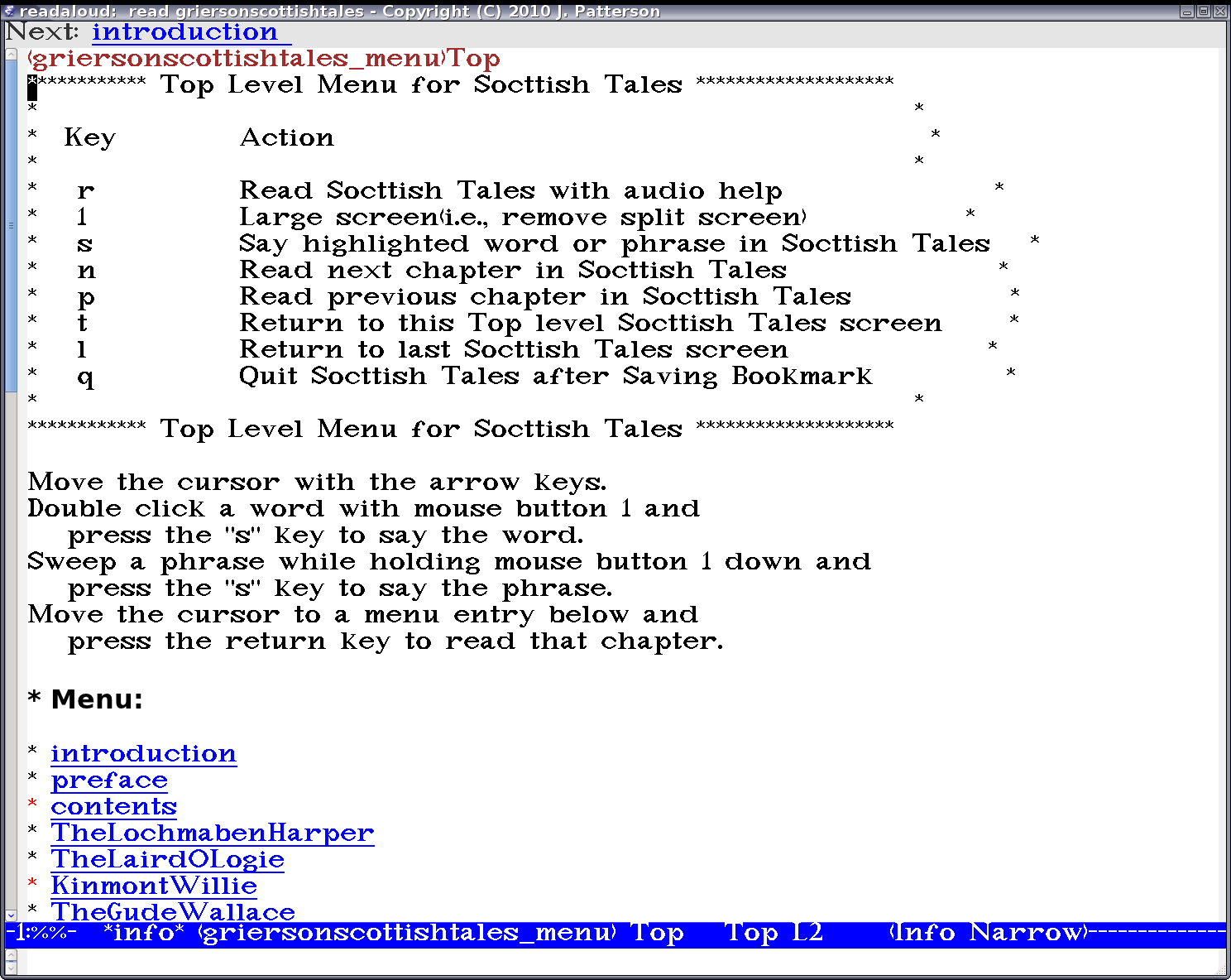 - Sweep a word or phrase with left mouse button and press "s" key to say it