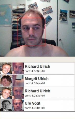 Watching the entrance area with a webcam and if a face is recognized, a personalized greeting is output to the speakers. Using QT, OpenCV, libface and espeak.