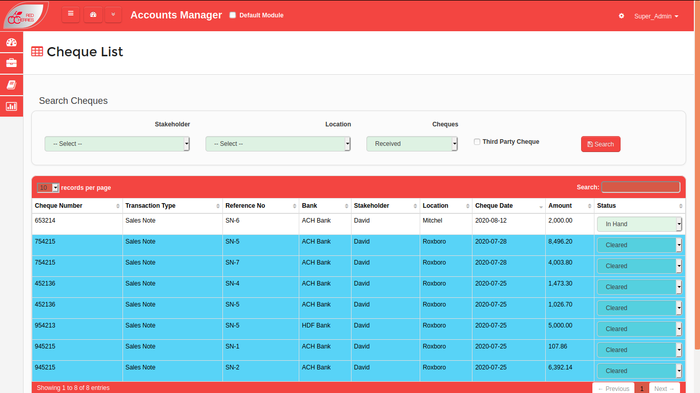 - Convenient Cheque List Screen