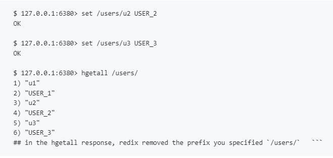redix is a very simple key => value storage engine that speaks redis and even more simpler and flexible. redis is very simple, sometimes we abuse it, so I decided to build a pure key-value storage system that introduces the core utilities for building any data structure you want based on the key => value model that is because I think that everything could be modeled easily using that model, so I decided to not to follow redis and all of its commands, you won’t find lpush, hset, sadd, … etc you will find a new way to do the same job but more easier and flexable, i.e, the well-known hset key field value command could be replaced with set key/field value, but sometimes you need to return a specific hashmap as key => value, but you run hget key field to get the key’s value and also it could be replaced with get key/field, but how could we replace hgetall key? I will say “it is easy”, let’s make the hget command work as a prefix scanner that scan the whole database.