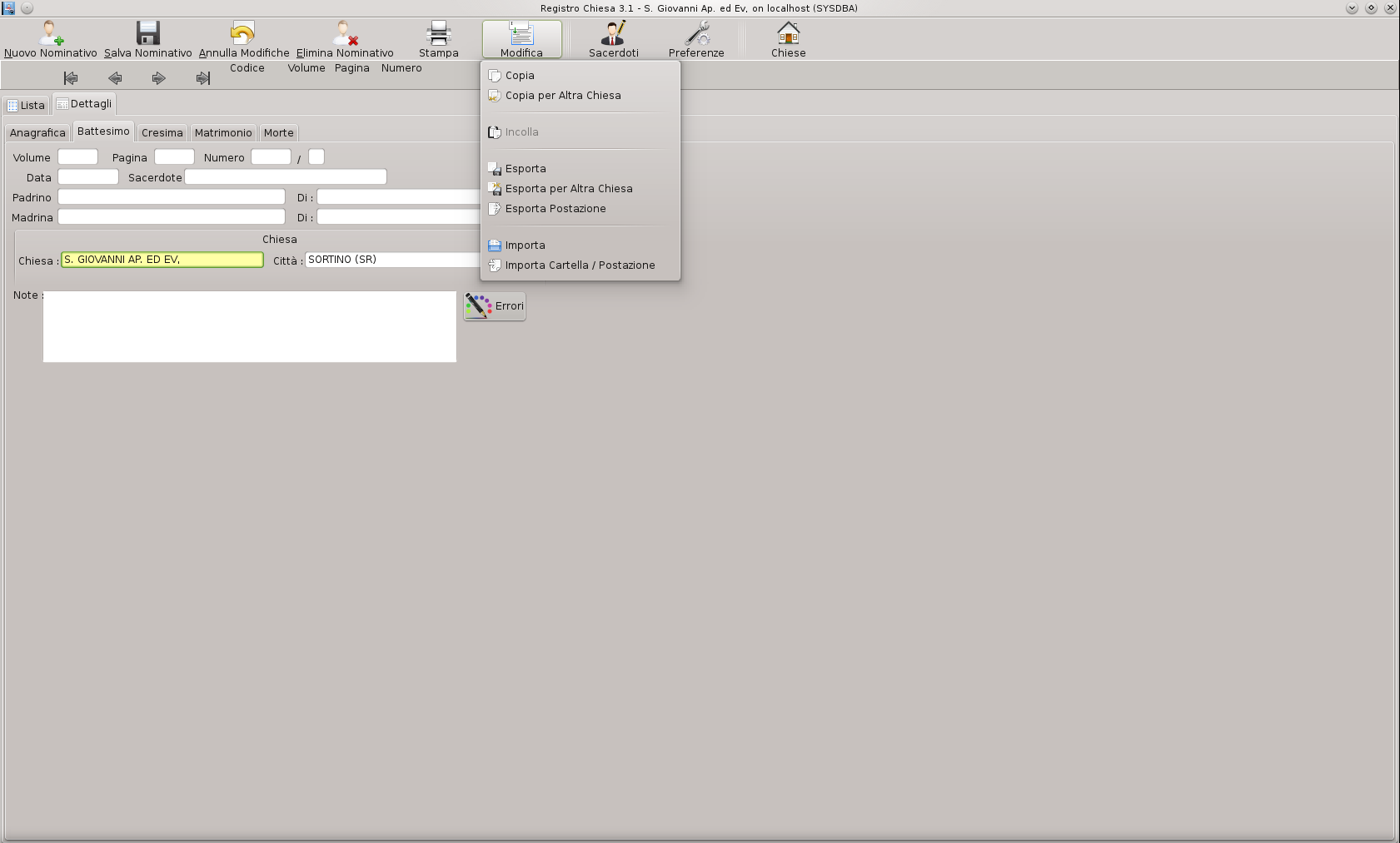 Software Open Source di Gestione dei Registri Parrocchiali con Inserimento, Ricerca, Stampa, ecc.