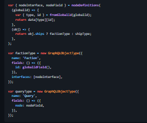 - Helper functions are provided for both building the GraphQL types for nodes and for implementing global IDs around local IDs.