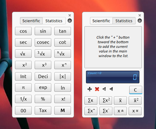 - Scientific Functions (Trignometry, Logarithms, Factorial, ...)