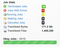 Reportula is a php based web program that provides you a summarized output stats of Bacula Backups jobs, clients, volumes and director that have already run. It obtains its information from your catalog database.