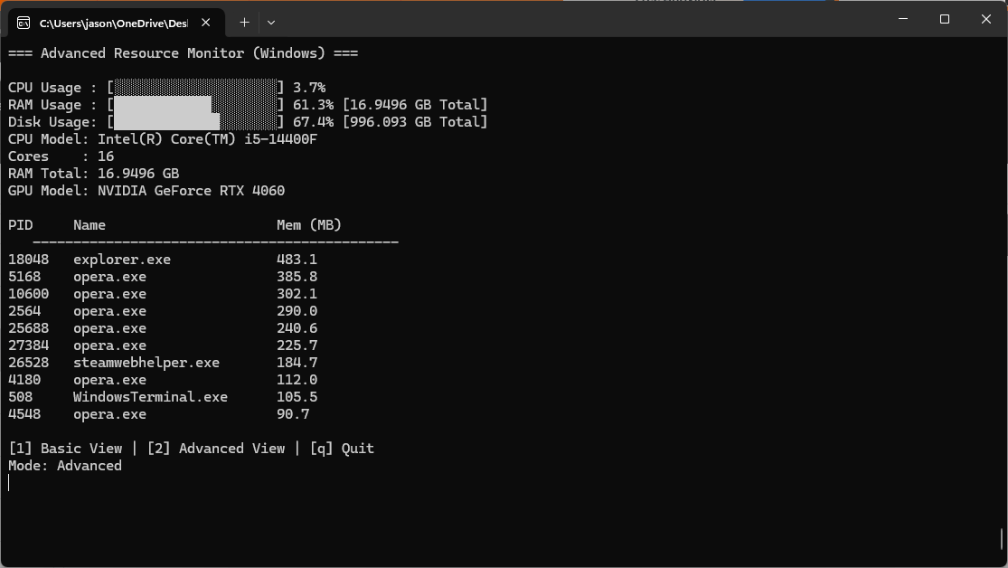 Lightweight Native C++ Terminal Based System Resource Monitor Perfect For Viewing System Resources.