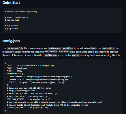 REST API built with Node, Express, PassportJS, MongoDB, Mongoose and Socket.io. The server.conf.js file is expecting certain environment variables to be set within Node. The env.conf.js has functions to check whether the expected environment variables have been set up before proceeding to start up the rest of the server. It uses a file called config.json stored in the config directory.