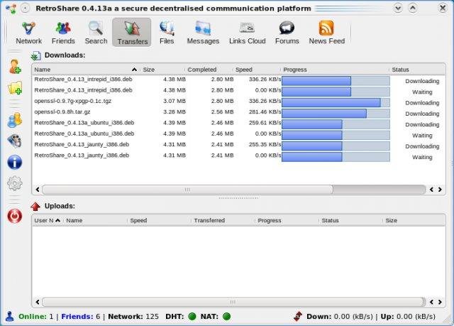 RetroShare is a cross-platform, secured and decentralized communication system. It lets you to securely chat, share photos, videos, and more with family and friends, using OpenPGP to authenticate peers and OpenSSL to encrypt all communication.