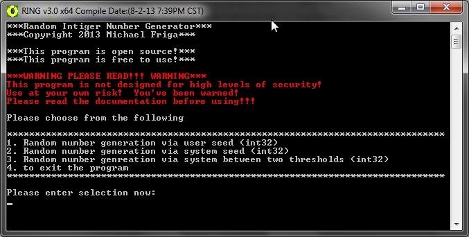 A small random number generator programmed in C# as part of another project that may never see the light of day, so it was decided this useful portion should be released. Please note that this program was formerly called RGN, or Simple Random Number Generator.