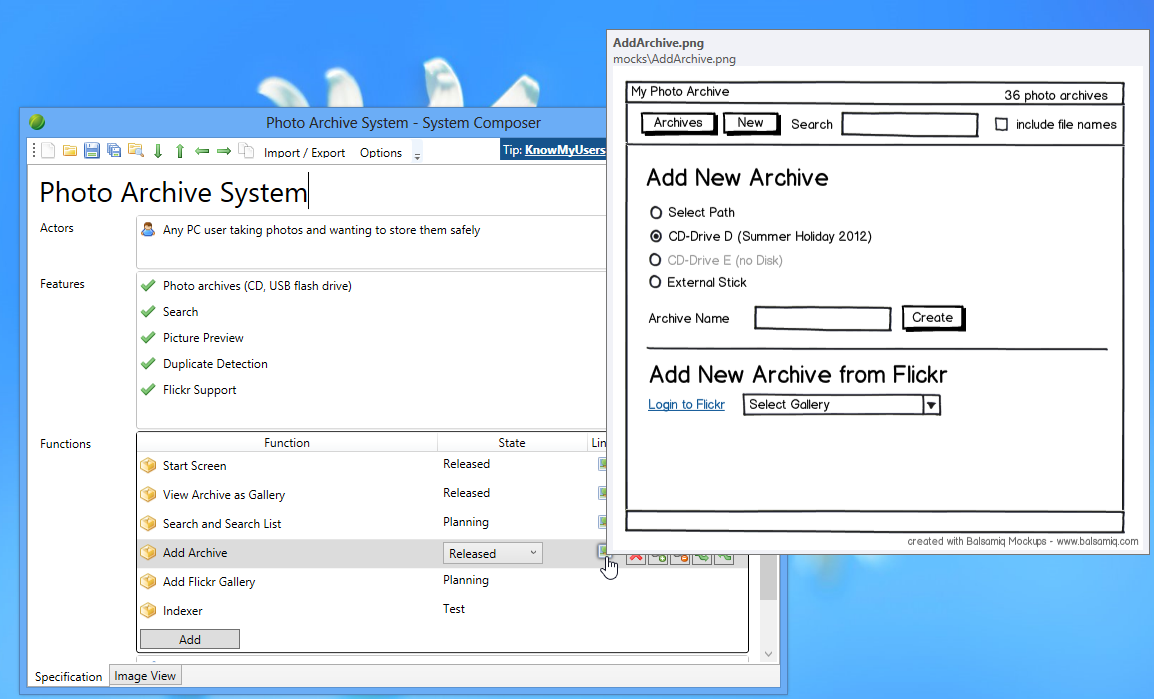 - Descriptive Software Specifications (using Actors, Features, Functions, Integrations)