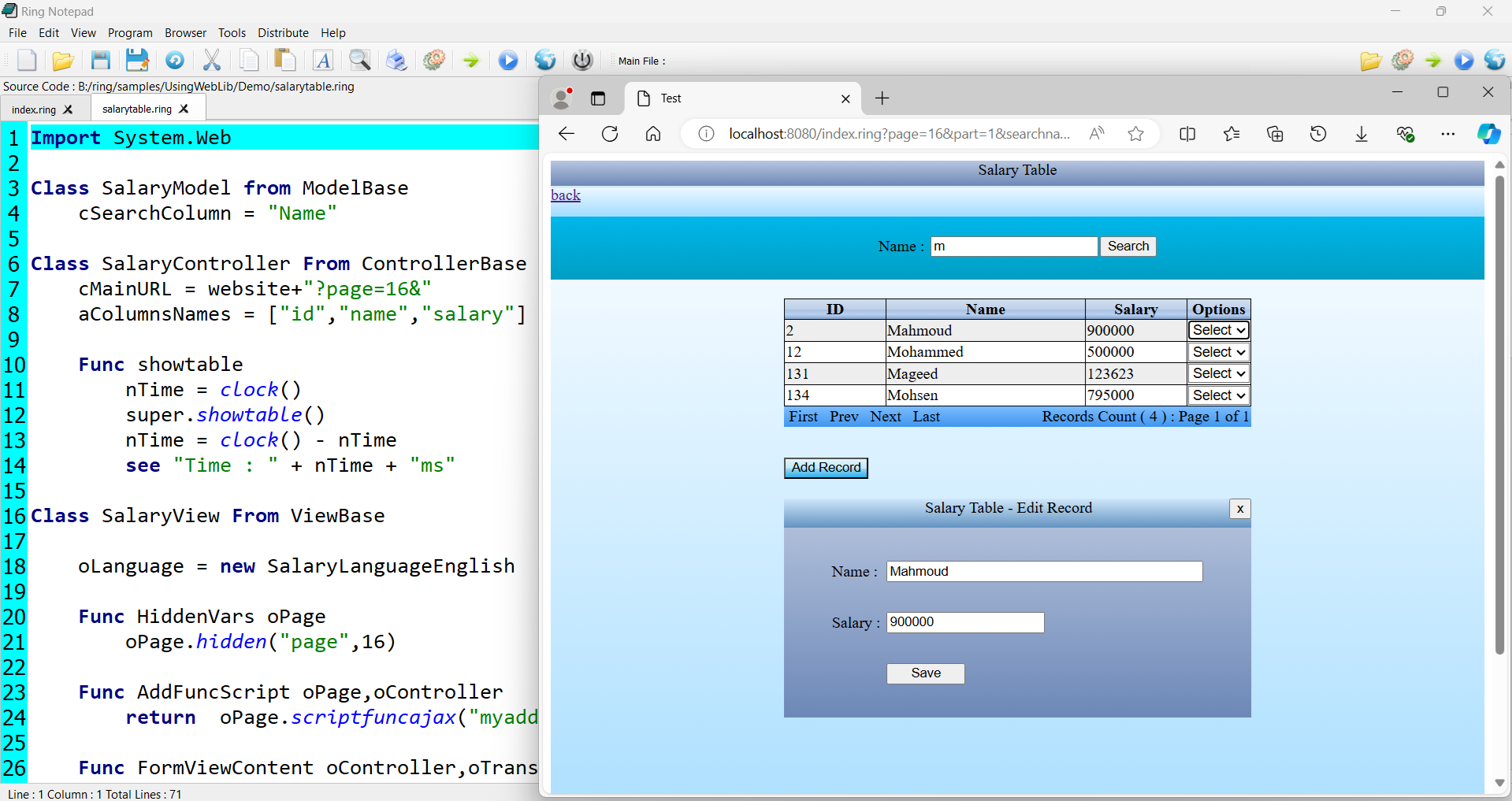 The language is designed to be simple, small and flexible. Ring is distributed as a Free-Open Source project under the MIT License.
