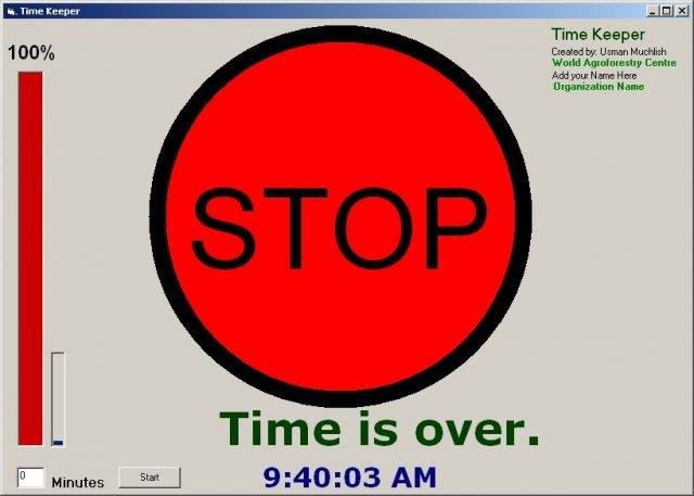 A simple count-down timer that provides a strong visual image of a traffic light changing from green to yellow to red to the speaker; a bit frightening to some, but the speaker starts off the timer and knows he/she gets a fair deal.