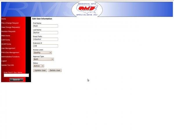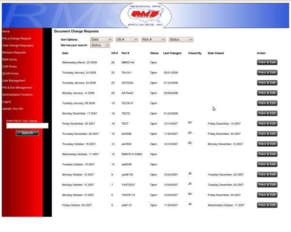 php & mysql web site for electronic document control for a manufacturing company who regularly generates engineering change requests, rev changes to product specification documents, RMA's, CAR's, SCAR's, and Part Number and document management.