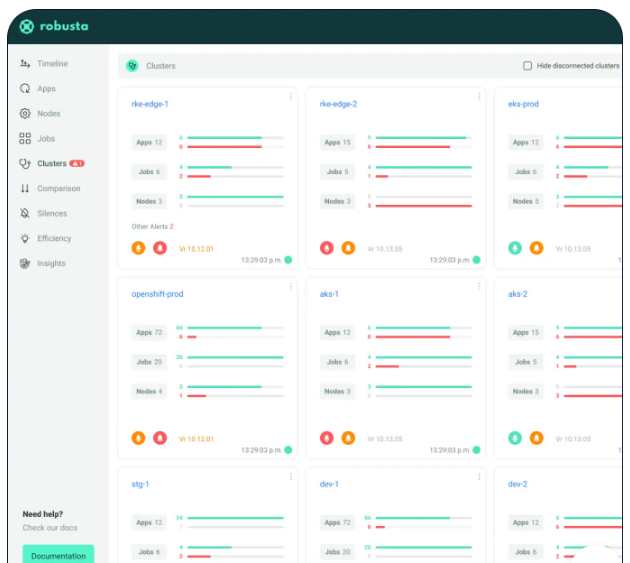 Keep your Kubernetes microservices up and running. Connect your existing Prometheus, gain 360° observability. Robusta is both an automation engine for Kubernetes and a multi-cluster observability platform. Robusta is commonly used alongside Prometheus, but other tools are supported too. By listening to all the events in your cluster, Robusta can tell you why alerts fired, what happened at the same time, and what you can do about it. Robusta can either improve your existing alerts or be used to define new alerts triggered by APIServer changes.