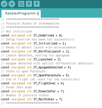 A small program for an Arduino compatible micro controller that controls the flight of a model (water-) rocket. It does control the preparation of the recovery system, has automatic launch detection, an apogee detection system, parachute deployment, and safety timers. All this is managed with the most simple one button and one LED user interface.