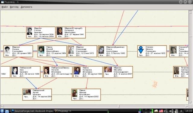 Rodovid is a drag-n-drop genealogic program for Linux or Windows based on Tk, Perl. You can edit info (name, sex, dates of birth, death, marriage, etc...) for individuals, add/remove photos, import and export GEDCOM data, creating sites, export data to PDF, etc.