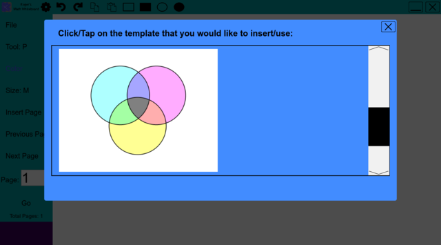 ***Update Nov 2022: The version available here is now out of date. See our website (www.rogersmathwhiteboard.com) for the latest version. *** Roger’s Math Whiteboard is a free, open-source, cross-platform, hardware independent whiteboard program designed around the needs of STEM teachers. It is designed to streamline the process of teaching math and science with a smart board, touchscreen or other similar device. It can best be understood as a multi-page image editor built for presenting/teaching use. This allows teachers to easily import a PowerPoint presentation, draw on the surface of each slide, add/remove pages if needed, and eventually save the finished product as a set of images for later use or perhaps distribution to the students. This can be useful for both presenting content in class as well as working through student questions, perhaps in a flipped-classroom setting.