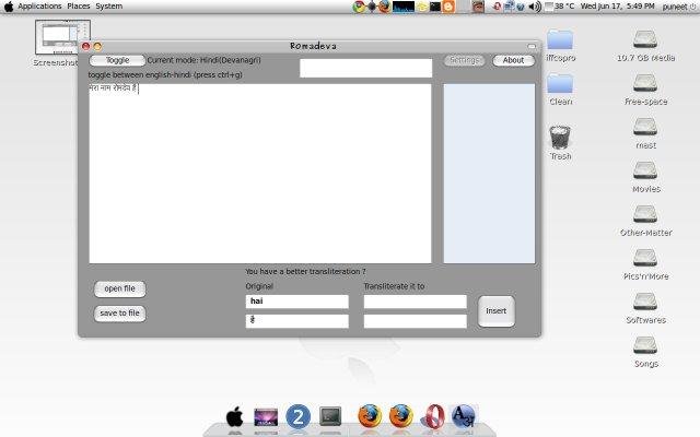 It is a simple tool to convert roman script to indic(Devanagari) script. As most Keyboards are English and to write in Indic script is difficult. It's easy to write Hindi from an English typewriter and that's the inspiration behind the project.