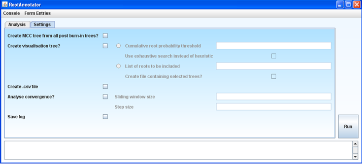 RootAnnotator computes root posterior probabilities. For this, it makes use of posterior collections of trees generated under clock models (e.g. .nexus files such as those generated by BEAST or MrBayes), from which branches wearing the root are identified and counted. It can annotate root posteriors on different types of summary trees, including maximum clade credibility trees (MCC trees). It can also create a file for Tracer to visualize the convergence of root posteriors.